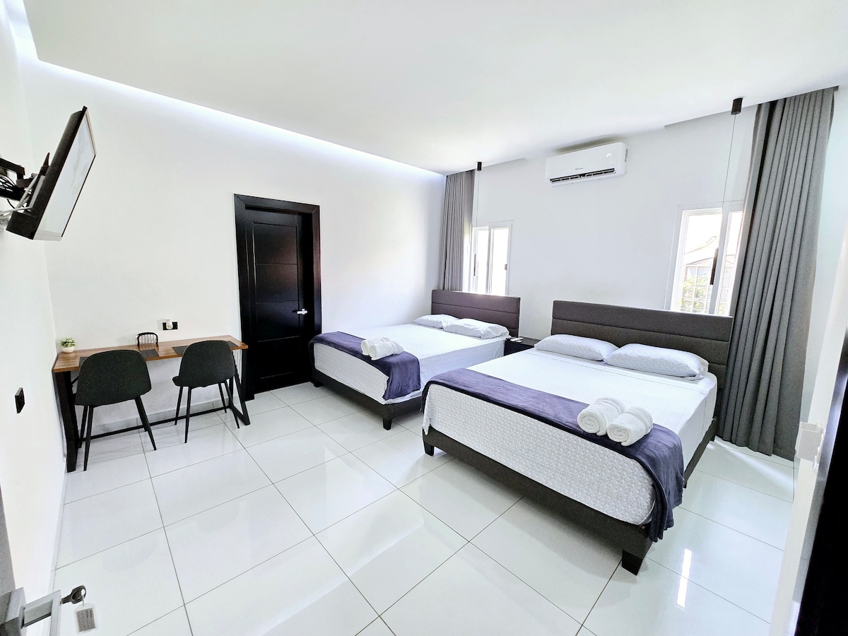 Modern appartement in San Pedro Sula in de buurt van de luchthaven Closed Circuit Residential met 24-uursbeveiliging Appartement met één slaapkamer met 2 queensize bedden, volledige badkamer, keuken en parkeerplaats voor één voertuig Maximale capaciteit 4 personen. "Bezoekers zijn niet toegestaan"