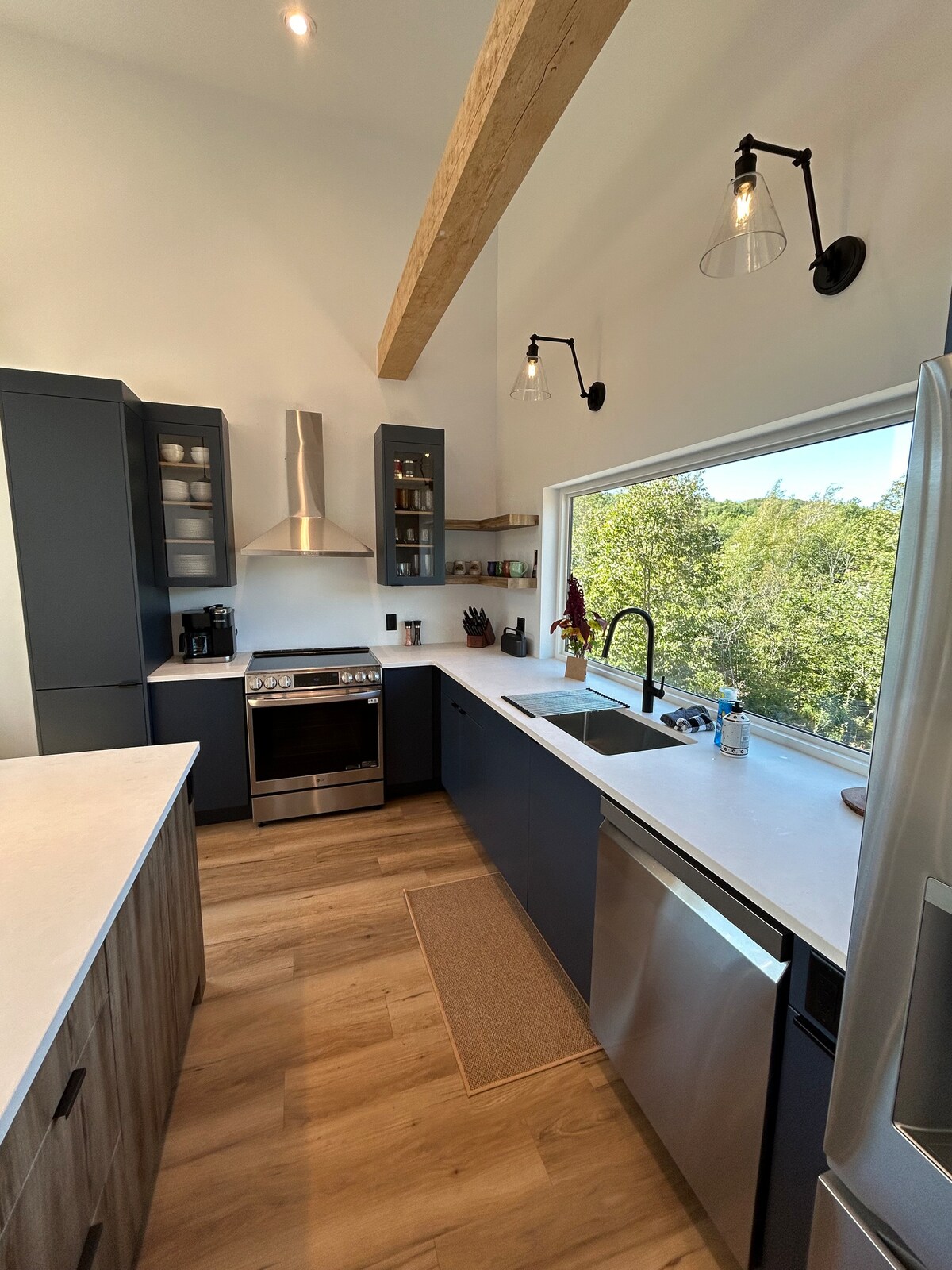 Een modern ontworpen, nieuw gebouwd appartement op een fantastische locatie op een paar minuten lopen van alles in Wolfville. Het appartement met 1 slaapkamer bestaat uit een queensize bed, een complete keuken en een bad, zitplaatsen voor 4 personen in de woonkamer, een eettafel, een bar en een kleine buitenpatio. Het appartement is volledig vrijstaand van ons huis en boven de garage. Er zijn een slimme tv en wifi, evenals airconditioning en parkeergelegenheid op het terrein voor één voertuig. Dit is een huisdier en rookvrij appartement.