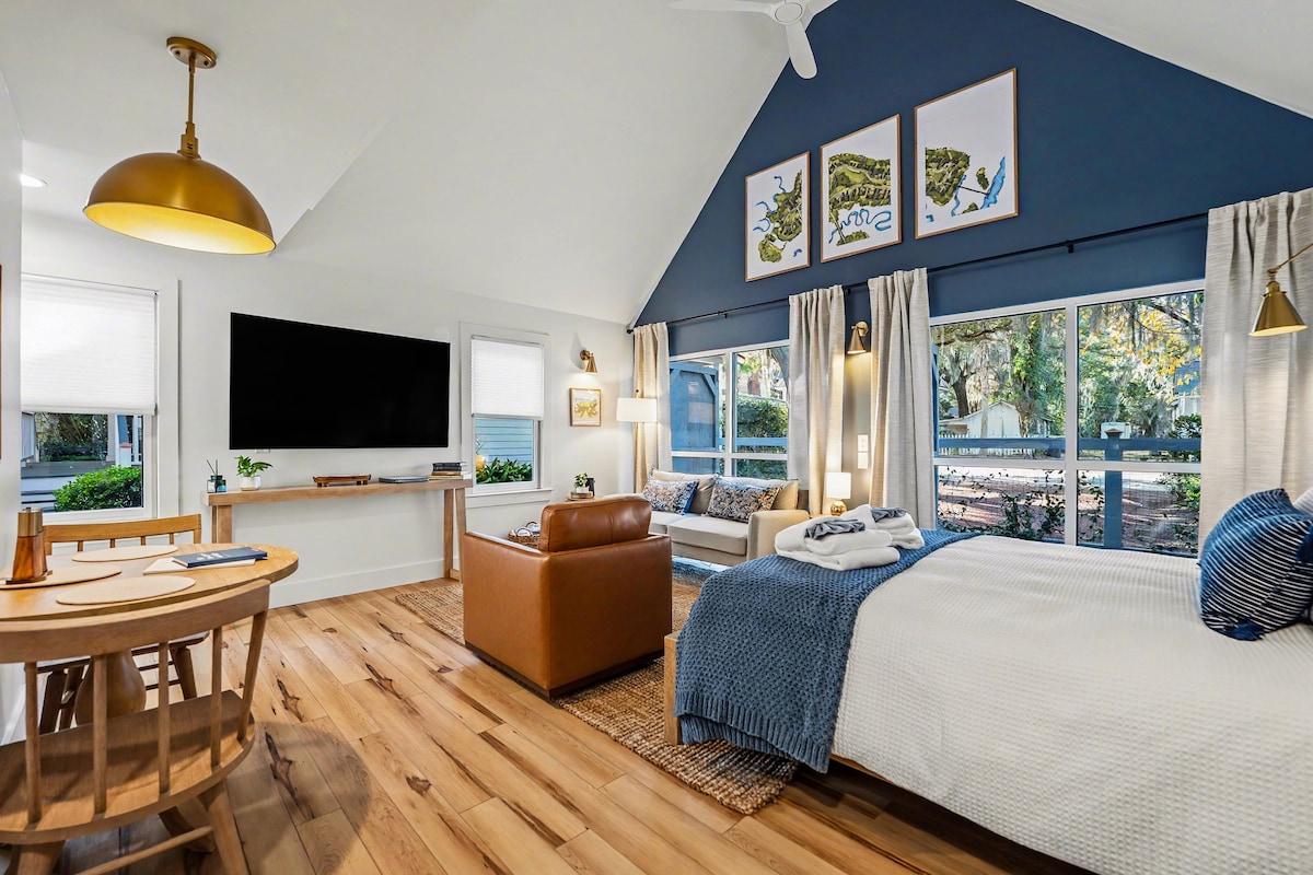 Escape to The Hideaway, a newly built modern 2BR/2BA waterfront retreat on St. Helena Island. Surrounded by live oaks and sweeping salt marsh views, this architecturally unique cottage blends luxury and nature with curated amenities, including a private indoor sauna. Peaceful and secluded, yet just minutes from beaches, outdoor adventures, local shops, and dining—designed for rest, reconnection, and renewal.