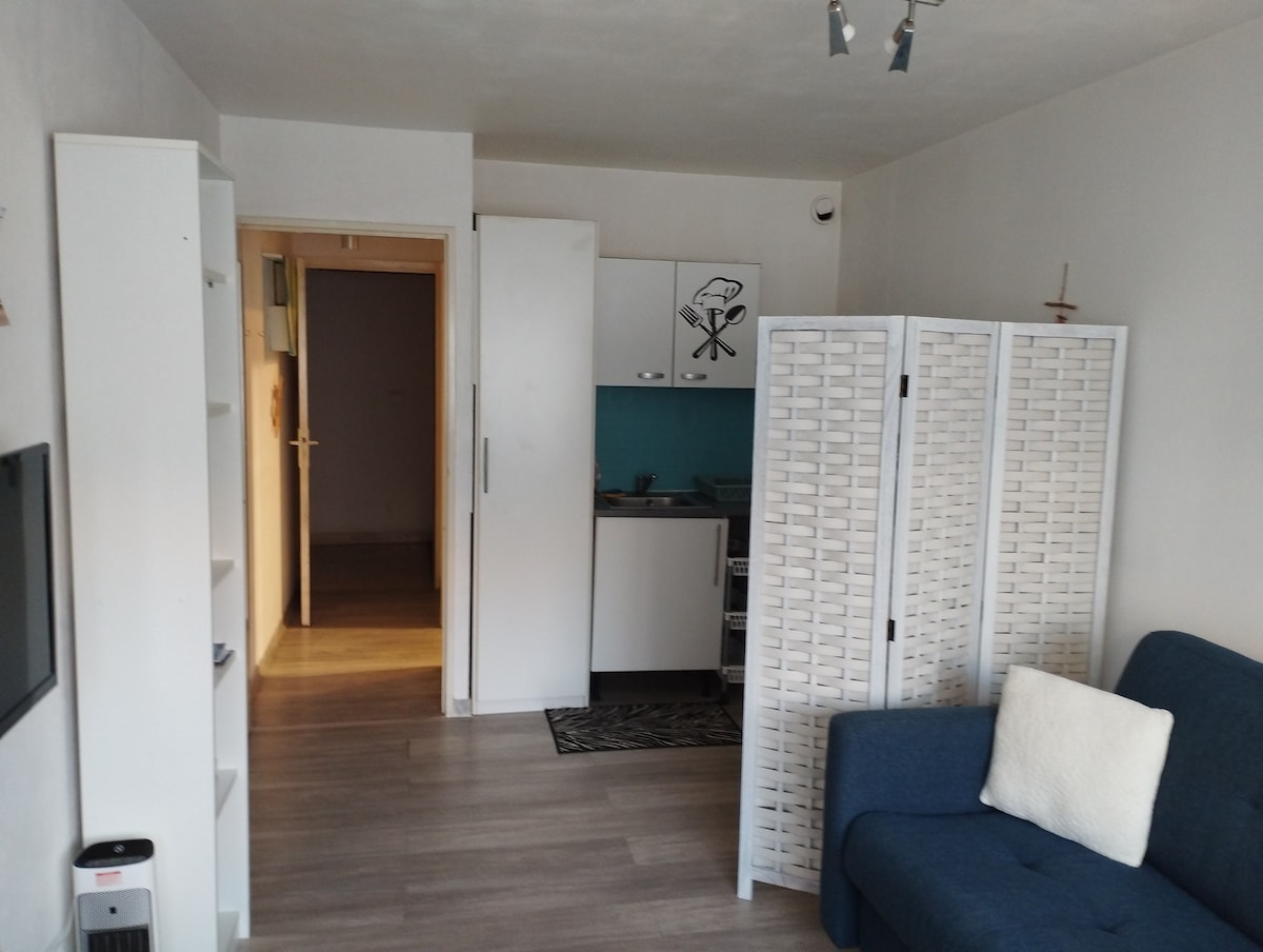 Welcome to our renovated studio facing the beach! Located in a quiet, secure residence just a 5-minute walk from the shops, it can accommodate up to 4 people. All comforts at your disposal: 140cm bed, 160cm sofa-bed, wifi, TV, washing machine, dishwasher, fully-equipped kitchen... Bed linen, towels and "essentials" (soap, coffee...) included.