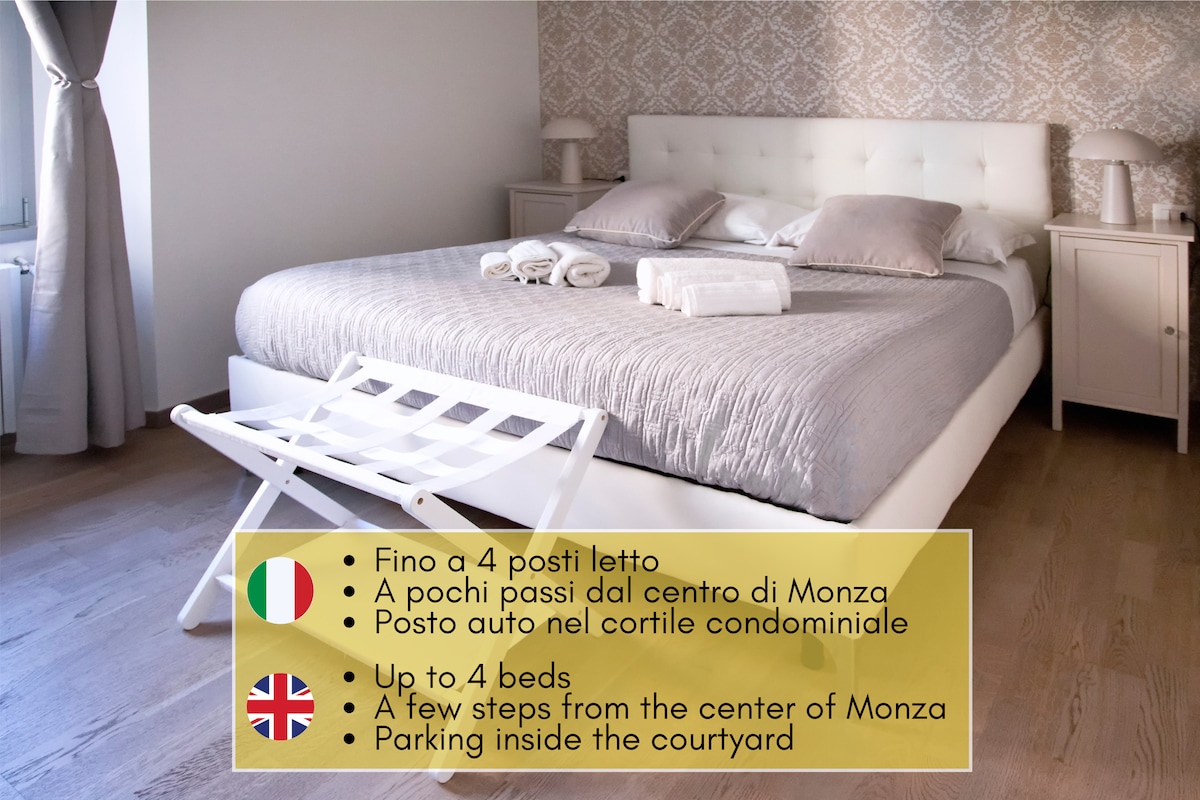 The Molini Residence is een elegant appartement in het hartje Monza! Op loopafstand van de kathedraal en de belangrijkste bezienswaardigheden van de stad bestaat het appartement uit een ruime en lichte woonkamer met volledig ingerichte open keuken, een tweepersoonsslaapkamer met grote inloopkast en een badkamer met ramen met grote douchecabine. Ervaar Monza volledig, ondergedompeld in de Italiaanse cultuur en schoonheid. Het gebied is goed bereikbaar en overvloedig met zowel gratis als betaald parkeren.