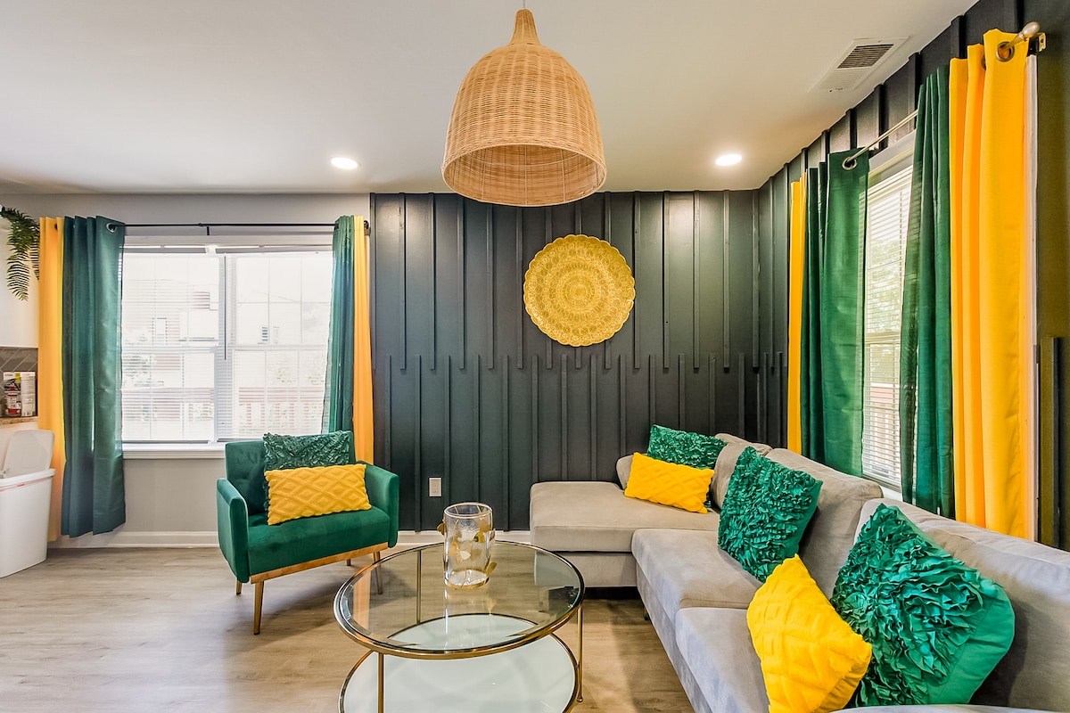 Gloednieuwe unit in het hart van het centrum op enkele minuten van voetbal en voetbal in het Mercedes Benz Stadium. Toegang tot het dak geeft je te allen tijde het perfecte uitzicht op het stadion. Moderne en ruime keuken klaar voor u om te koken of te bakken! Geïnspireerd door een Scandinavisch Boho minimalistisch ontwerp geniet van het spel en kom thuis in enkele minuten naar comfort!