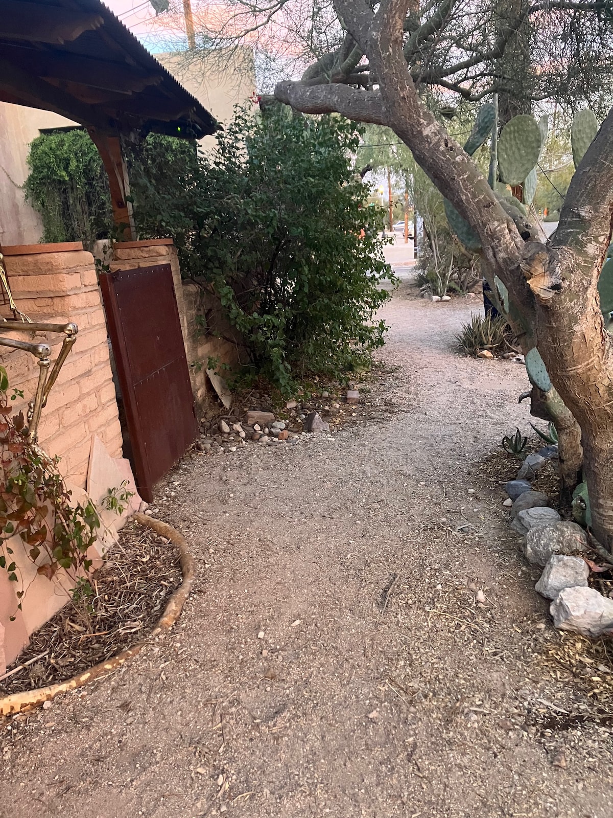 Our bungalow is nicely suited for 2, features a separate kitchen, a 3/4 bath, & large main room for sleeping or relaxing. We offer a private entrance with carport parking. Yard is fenced, with dog door, up to 2pets are welcome. Centrally located, within minutes of the airport, downtown and the University of Arizona. We are within walking distance to Reid Park for golfing or a visit to the Zoo. Even though we are midtown with easy access to many areas of town, you will find it surprisingly quiet.