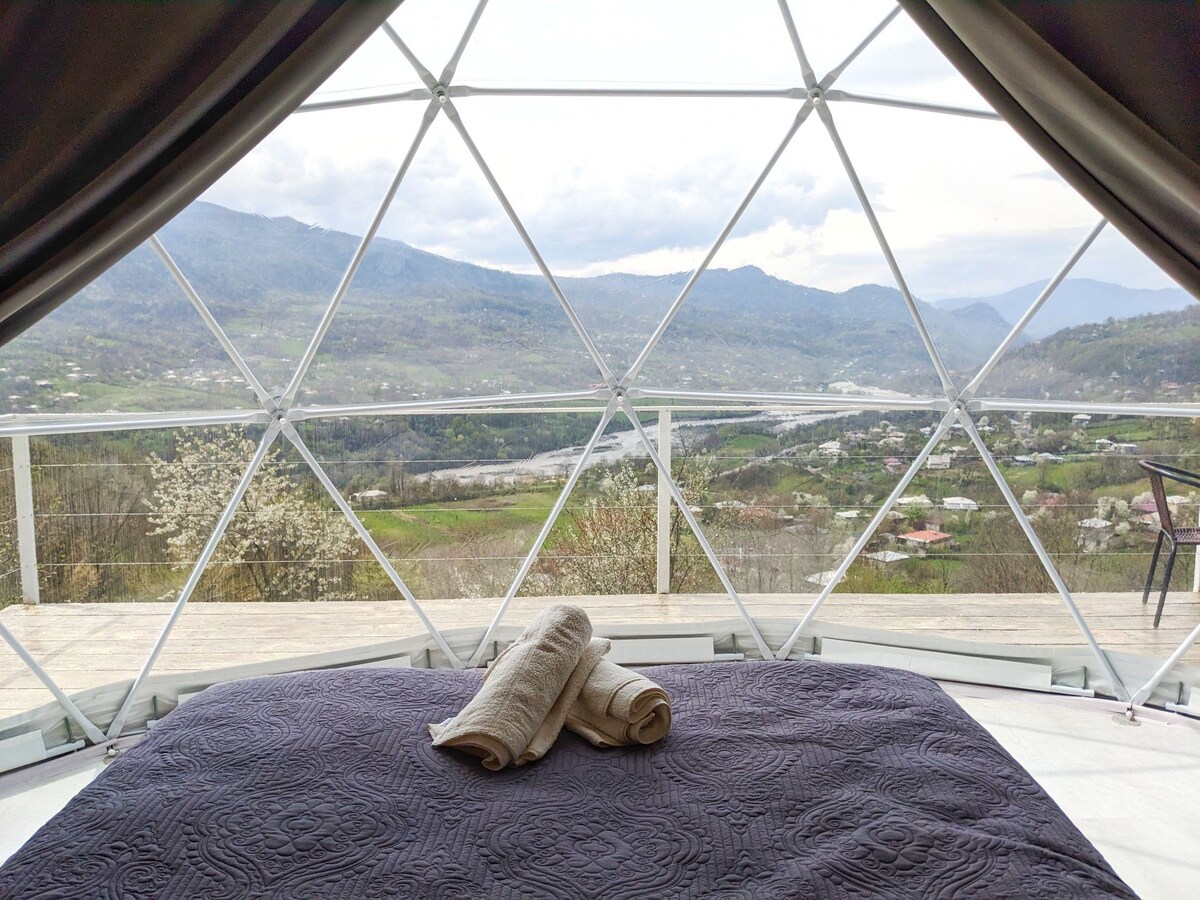 De twee koepels van Ajara Glamping zijn gelegen op een perfecte plek, met een breed prachtig landschap en dicht bos. Het biedt veel meer dan de prijs kan aangeven. Alle noodzakelijke voorzieningen en beschikbaarheid van wandelpaden, geschiedenissen en natuurlijke bezienswaardigheden op korte afstand kunnen je verblijf gedenkwaardig maken. Perfect uitzicht, comfortabele tent, rust, verbazingwekkende natuur en mogelijkheid om ongewenst te krijgen en Ajara zijn sleutelwoorden.