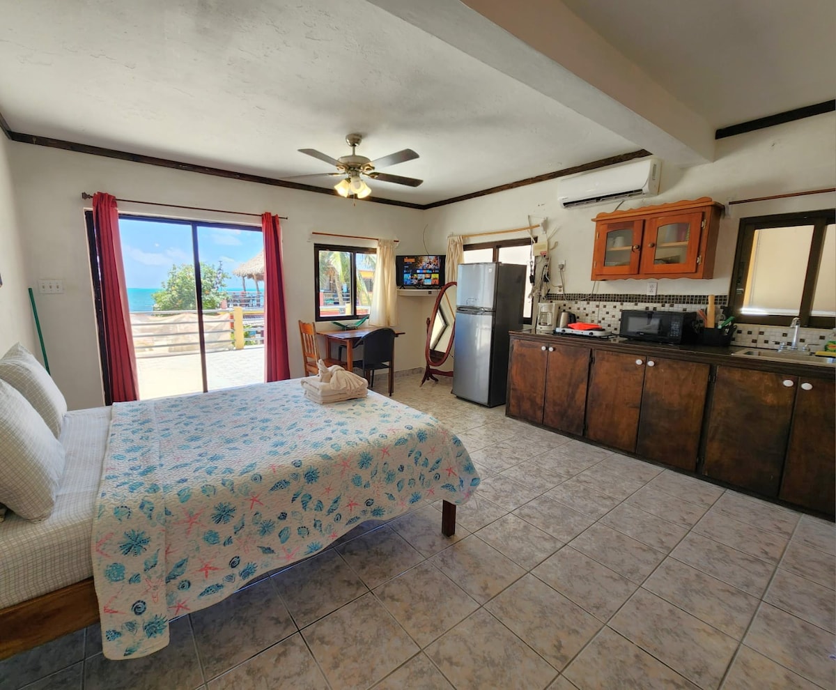 Vergeet je zorgen op deze ruime en rustgevende plek aan de oceaan in Caye Caulker. Gelegen op een enorme omheinde privéplek aan de zuidkant op slechts een paar minuten van het dorp. Ontspan in een hangmat, op het zonneterras of op je patio met uitzicht op het strand, genietend van een lekker drankje! Maak een fietstocht naar de stad voor het diner of kook je vangst thuis. Het draait allemaal om JOU! De suite is luxueus en comfortabel @ 800 m ². Basisvoorzieningen om aan de slag te gaan zijn voorzien. 12,5% Govt-belasting verschuldigd bij aankomst.