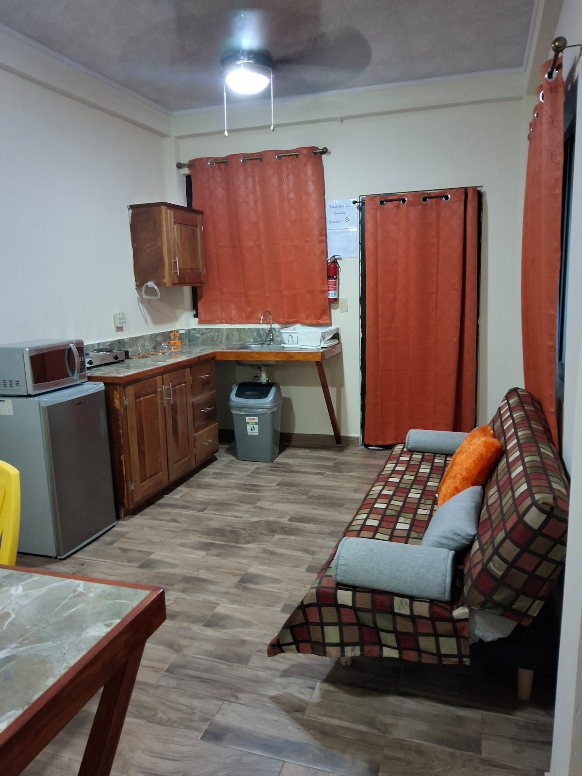 Dit Belize Vacation Cottage ligt net buiten het dorp weggestopt. Loop naar de zee, gelegen aan het einde van onze straat, of ga naar het dorp, 10 min lopen langs het strand. Dit huisje is een uitstekende budgetvriendelijke optie voor singles, koppels, vrienden of kleine gezinnen. Aqua Villas Cottage A heeft een queensize hoogslaper en een eenpersoonsbed in de woonkamer met smart-tv.