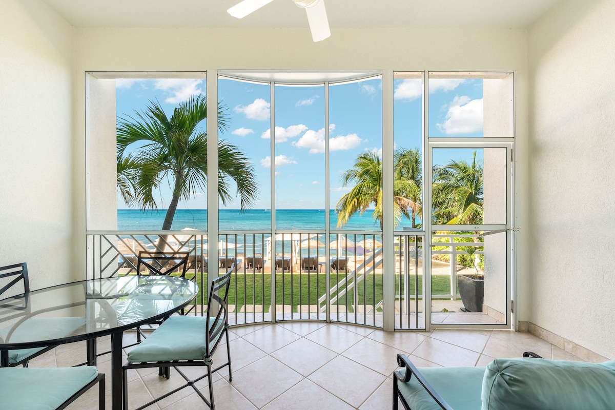 This beautiful 2-bedroom, 2 bath condo provides 1,350 square feet of beachfront living space, including a screened patio. Patios come furnished with an outdoor dining table or a small lounge area. It’s the perfect spot to start your morning with a cup of coffee or wind down the day with a sunset happy hour. Inside, the interiors feature elevated ceilings, cool tiled floors, and modern fixtures. Central air conditioning, complimentary high-speed wifi, and satellite television programming will keep you cool and connected throughout your stay. The living area comes furnished with plush sofa seating, plus an entertainment center with high-definition television, Blu-Ray player, and home audio system. Enjoy all the comforts of home with oceanfront views throughout the living area. The home’s two-bedroom suites sleep 4 guests comfortably. Each bedroom is equipped with an en-suite bath and a television. Sleeping Arrangements (Sleeps 4 guests total) Primary Suite - king bed, television, guest safe, ensuite with dual vanity, and shower. Guest Suite - queen bed, television, ensuite with shower and bath. A fully equipped kitchen with modern appliances includes everything you need to prepare a home-cooked meal. Cookware, flatware, stemware, and cutlery are all provided. Both the patio dining table and the kitchen breakfast bar seat four guests. Daily housekeeping is included throughout your stay (Except Sundays and Christmas Day). All linens, plus bath and beach towels, Toiletries, along with Paper Towels, Bathroom Tissue, and dish detergent are provided. Each condo is also equipped with a full-size washer and dryer. Laundry service is available by contacting the front desk. Located within walking distance to restaurants, nightlife, shops, and watersports, the South Bay Beach Club is a wonderful resort for guests looking for a Seven Mile Beach vacation. For concierge services, feel free to email us at — we're here to help make your vacation as smooth and enjoyable as possible. Entire_home