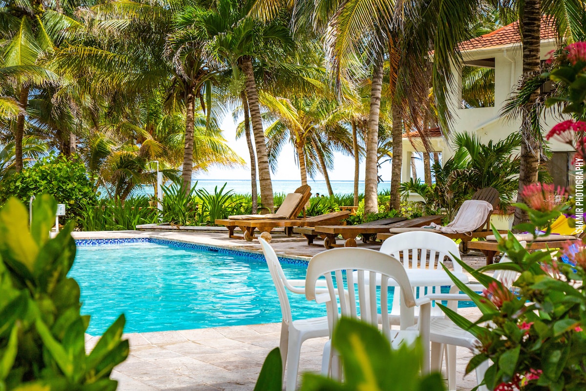 Escape to paradise at West Caye Casitas, your private oasis near Belize’s famous Secret Beach on Ambergris Caye. Unwind in one of our three cozy, solar-powered studio guesthouses, complete with a shared pool, eco-friendly water collection, and WiFi for the perfect off-grid experience. Secret Beach is < 1 mile away, you'll have easy access to pristine sands and the world’s largest living coral reef. Book 1, 2 or all 3 Casitas. or Add La Buena Vida, our neighbor, for parties of up to 12.