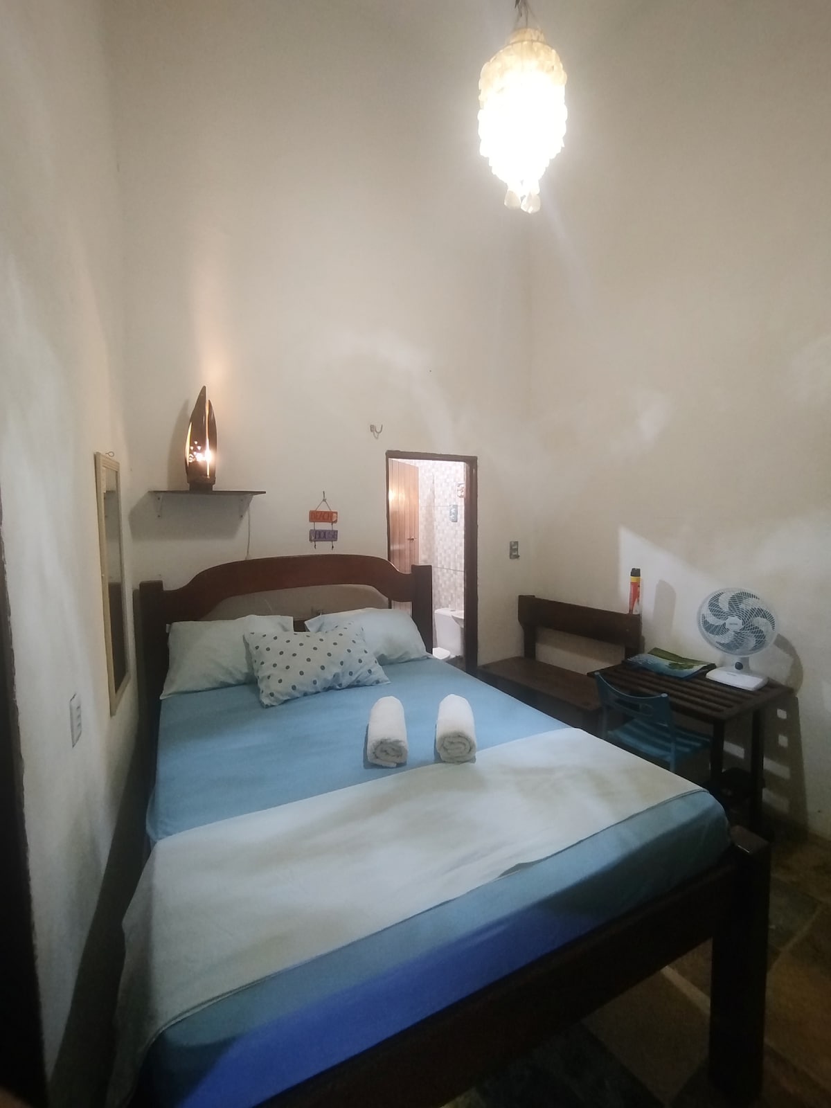 Koele plek met privékamer,ventilator, bed, eigen badkamer en keuken met basisgerei (bestek, potten, servies, blender). Gelegen op drie blokken van het strand, vlakbij de beste strandkraampjes (Vira Verão en Crocobeach). Overdekte parkeerplaats. Let op: het heeft een airconditioningoptie, tegen een vergoeding van 30 reais per dag.