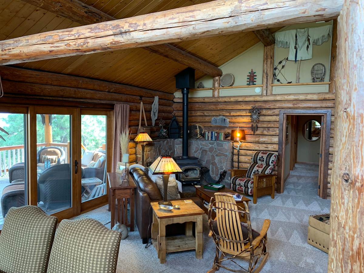 Bergwoning gunstig gelegen op 1-40 en 15 minuten van Albuquerque. Deze mooie suite met uitzicht op de bergen van 900 vierkante meter heeft een eigen ingang vanuit de hoofdwoning. Geniet van een queensize bed met een zithoek met uitzicht op het bos en de werkplek. Een queensize slaapbank wacht op je, samen met een grote tv in de familiekamer. Geniet van de geluiden van de natuur op je patio naast het Cibola National Forest. Deluxe bad met bubbelbad, mini-keuken/bar, piano, bordspellen en bibliotheek zijn voor jouw gebruik.