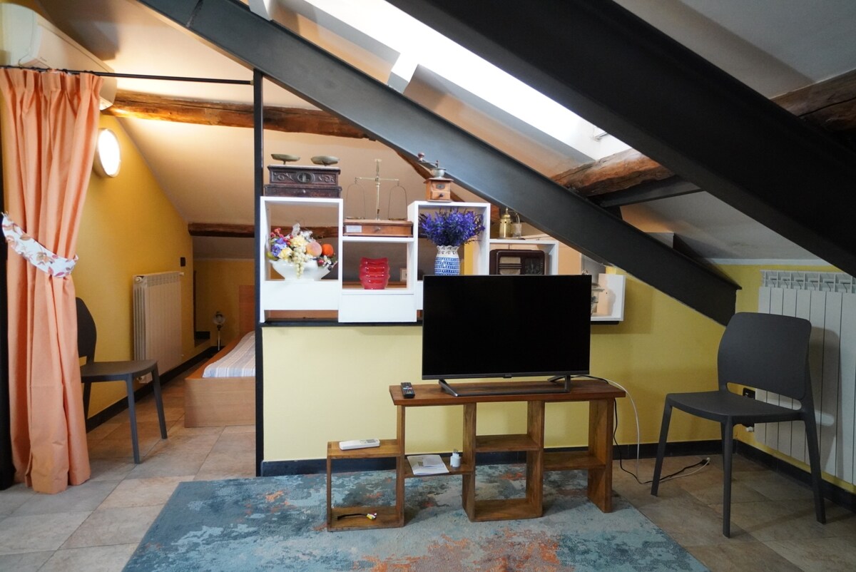 Ontdek onze zolder in Savona, een gezellig nest dat volledig is gerenoveerd en moderne stijl en warmte combineert. De accommodatie heeft twee slaapkamers en een volledig uitgeruste keuken, perfect om je thuis te voelen. Elke kamer beschikt over airconditioning en onafhankelijke controle. Het hoogtepunt is het terras, ideaal om buiten te dineren en te genieten van zomeravonden. Tot slot is de droombadkamer met designafwerkingen je eigen kleine privé-spa.
