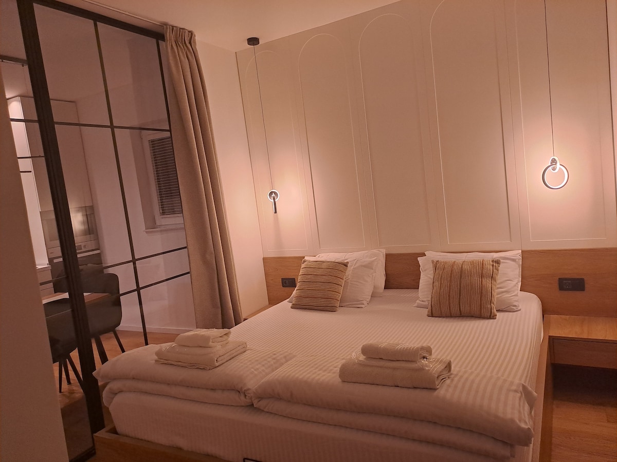 Experience PREMIUM living in our tastefully furnished apartment. The attention to detail is evident in the designer lighting, modern touches and pleasant color scheme. Located just a 10-15 min walk from center, perfect for short or long stays, high-standard accommodation, ideal base for your next trip. We are here to help you have a memorable experience in Skopje. ✹MIRROR APARTMENT✹ See yourself at this home and you'll feel like you're on a throne.