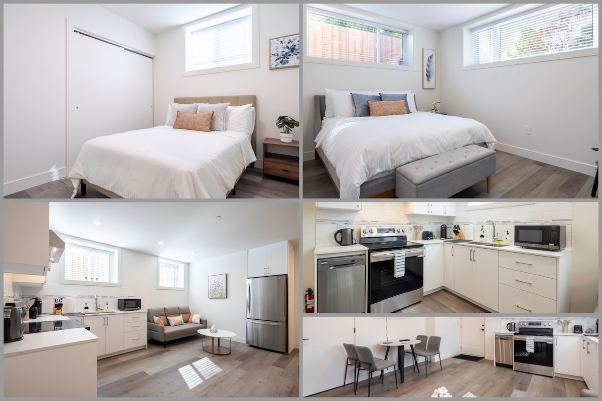 Onze Bright Cozy Suite wordt door gasten beschreven als chique en elegant en ligt op slechts 8 minuten lopen (of minder) van het Skytrain Station. Met zorg ontworpen voor een ontspannen verblijf in boetiekstijl. Deze lichte en mooie studio heeft een eigen ingang, een eigen badkamer, verwarmde vloeren en kitchenette. Geniet van de tv-ruimte, eethoek en leesstoel met zitkussen om te loungen. Plus charmante moderne inrichting en comfortabel queensize bed maken deze suite een gezellige plek om naar terug te keren na een dag in de stad.