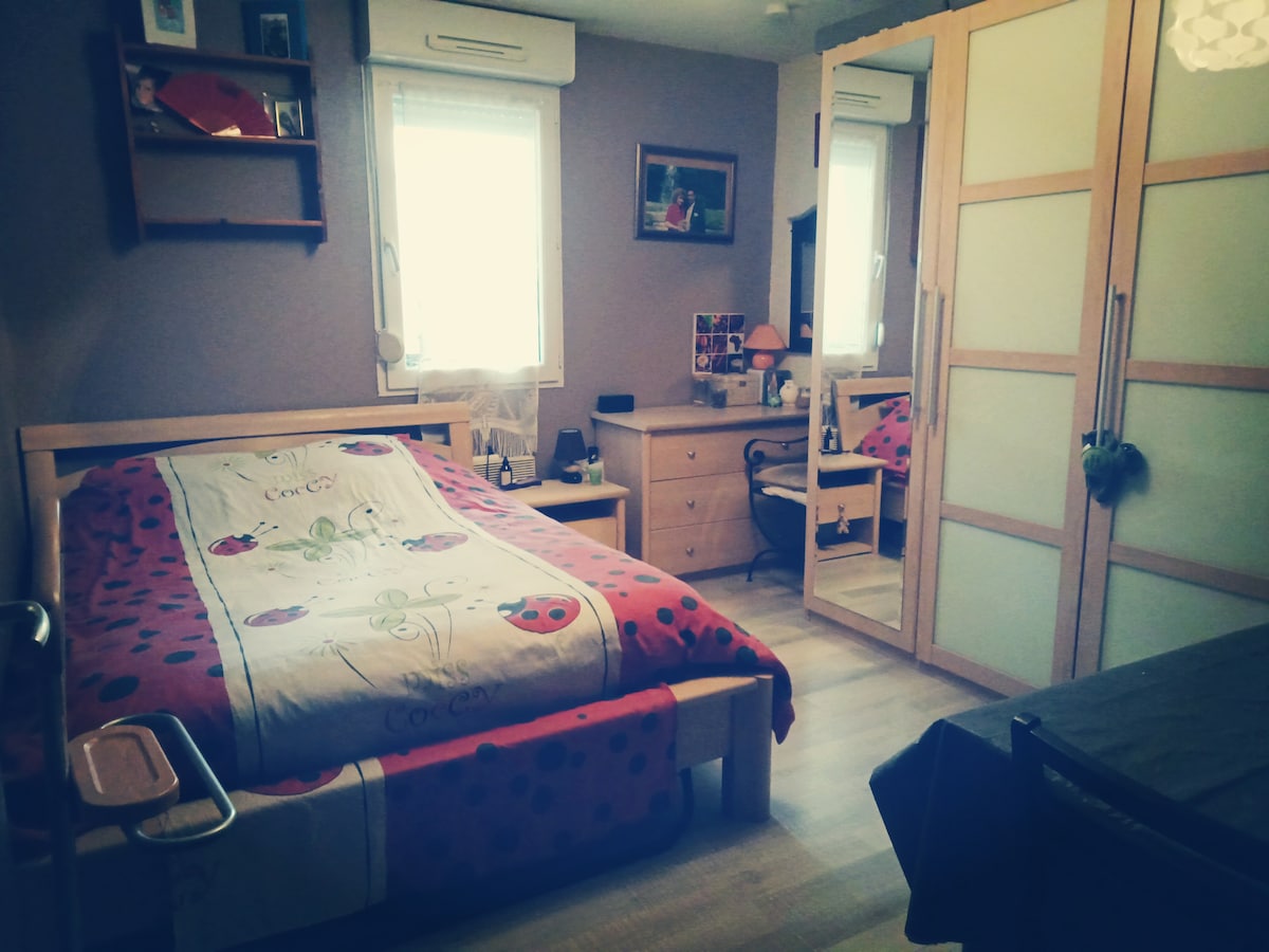 In zijn groene omgeving, onafhankelijk appartement in huis. Parkeerplaats in de buurt.