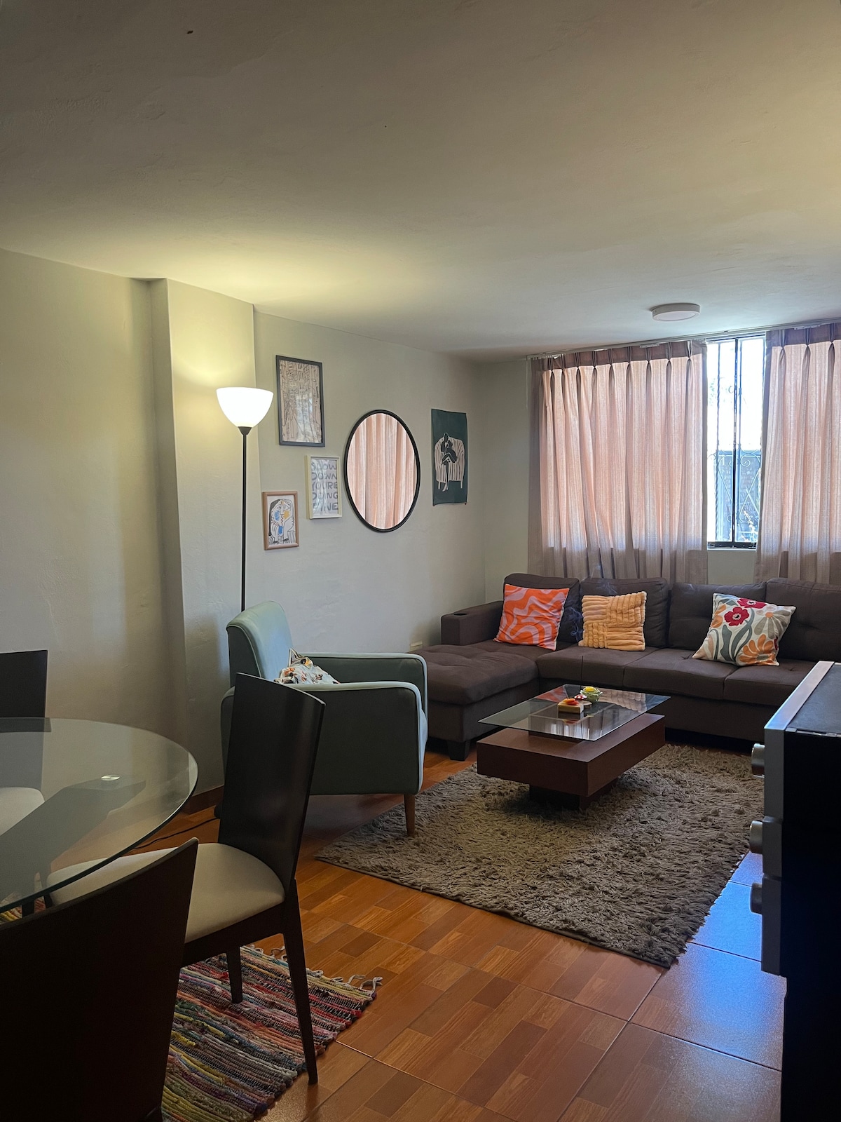 Departamento totalmente amoblado con 3 habitaciones, sala-comedor, cocina equipada, 2 baños, lavandería y patio. Espacios amplios y funcionales, ideal para familias, grupos o estadías prolongadas. Cuenta con muebles, electrodomésticos y todo lo necesario para vivir cómodo desde el primer día, en una ubicación estratégica. ¡Tu lugar ideal para descansar y disfrutar!