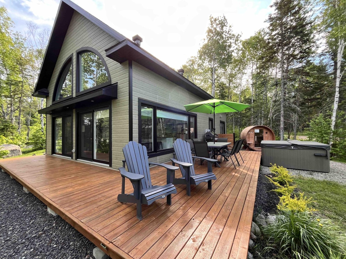 Chalet Le Pôle Nord – Luxe, natuur en ontspanning in het hart van Charlevoix Op 800 meter van het resort Mont Grand Fonds 4 seizoenen skiën, mountainbiken en wandelen. Gelegen in het hart van het boreale bos, in het regionale park Mont Grand Fonds We beloven je een unieke en onvergetelijke ervaring Deze uitzonderlijke schuilplaats combineert modern design met de warmte van edele materialen om een sfeer te creëren die zowel luxueus, gastvrij en diep verfrissend is.