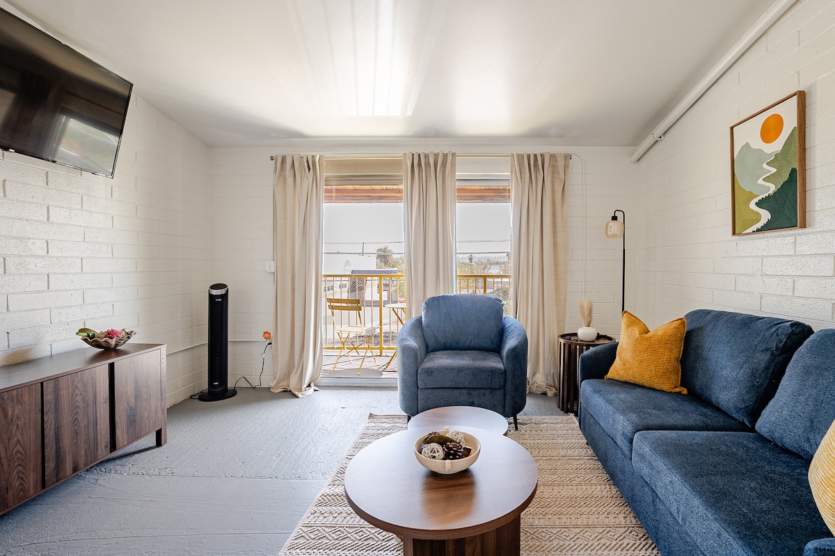 Historic Garfield One-Bedroom Urban Escape – Een strak, industrieel-chique toevluchtsoord in een Kaiser-architectuur. Deze unit op de begane grond is voorzien van gepolijste betonnen vloeren, op maat gemaakte witte kasten, roestvrijstalen apparaten en een glazen douche in spa-stijl. Ontspan in de slaapkamer met kingsize bed met een smart-tv en een plafondventilator. Geniet van off-street parkeren, een voortuin en een toplocatie op slechts enkele minuten van Downtown Phoenix, Roosevelt Row en de I-10.