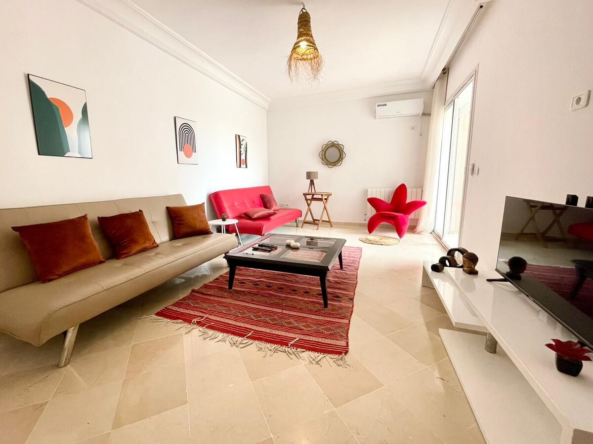 Licht appartement op een steenworp afstand van Kairouan's Medina. Perfect voor gezinnen of groepen: 3 queen bedden, 1 luchtmatras, een babybed, volledige keuken, ruime woonkamer, airconditioning, wifi, wasmachine. Onlangs gerenoveerd en dicht bij souks, cafés en historische bezienswaardigheden.