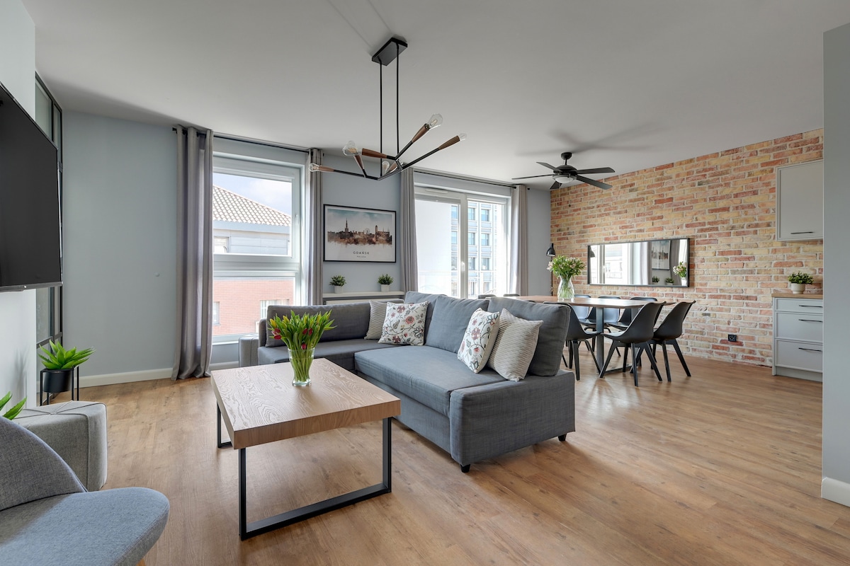 Het appartement is gelegen op 12/173 Święta Barbara Street, zeer dicht bij de oude binnenstad van Gdansk. Dit is een ruim, luxe appartement met vier slaapkamers, een woonkamer en twee badkamers.