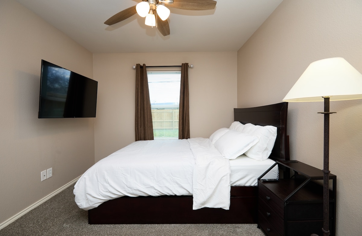 Welkom in het gele Texas Star-huis! Gunstig gelegen in de buurt van de basis, in de stad en het ziekenhuis, zul je merken dat alles wat je nodig hebt in de buurt is! Het huis is volledig uitgerust en klaar voor je verblijf! Mijn favoriete plek om rond te hangen is het prieel in de achtertuin. Het open concept maakt het makkelijk om tijdens het koken te praten of spelletjes te doen! De kantoorruimte(ingesteld met basisstation, dubbele schermen, draadloze muis en toetsenbord) is geweldig voor je werk onderweg.