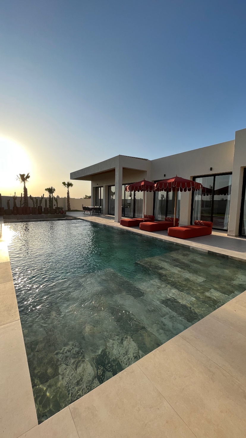 Séjournez dans une magnifique villa idéale pour familles et groupes. Profitez de 2 grands salons lumineux ouverts sur une superbe piscine, d’une cuisine ultra moderne entièrement équipée avec espace repas convivial. Jardin avec trampoline, ping-pong et baby-foot. 3 chambres, 2 lits Queen Size et 4 lits simples, 3 salles de bain haut de gamme et un hammam élégant pour des moments de détente inoubliables.
