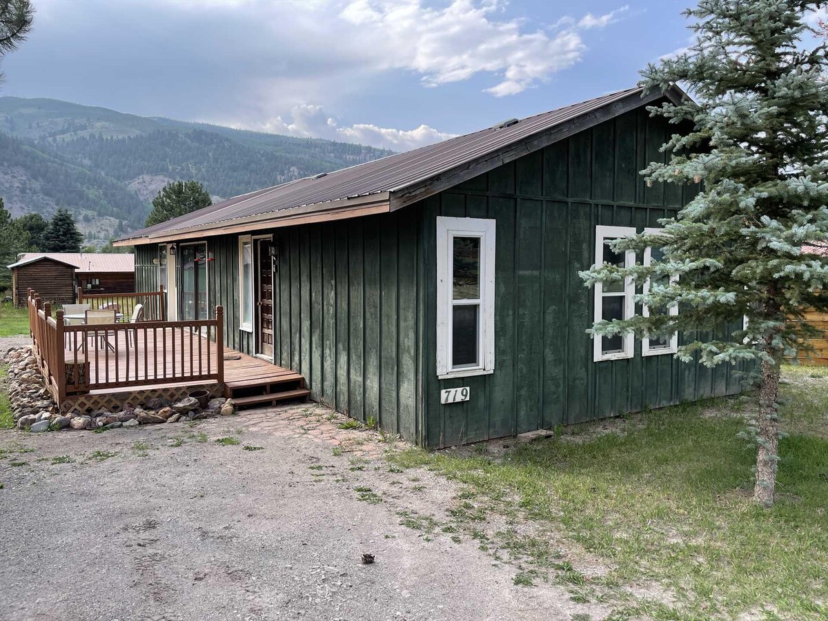 This eclectic three-story log home is on the edge of Lake City. It offers stunning mountain views. This colorful house can sleep up to 8 people. The house has stairs including a tight, narrow spiral staircase to the basement. It has an open-floor plan upstairs with a king bed & a full bathroom. There are bunks beds in the basement along with only one TV. This home is ideal for people looking to unplug & unwind. It also has a wrap around deck with a BBQ & parking for a truck & trailer onsite.