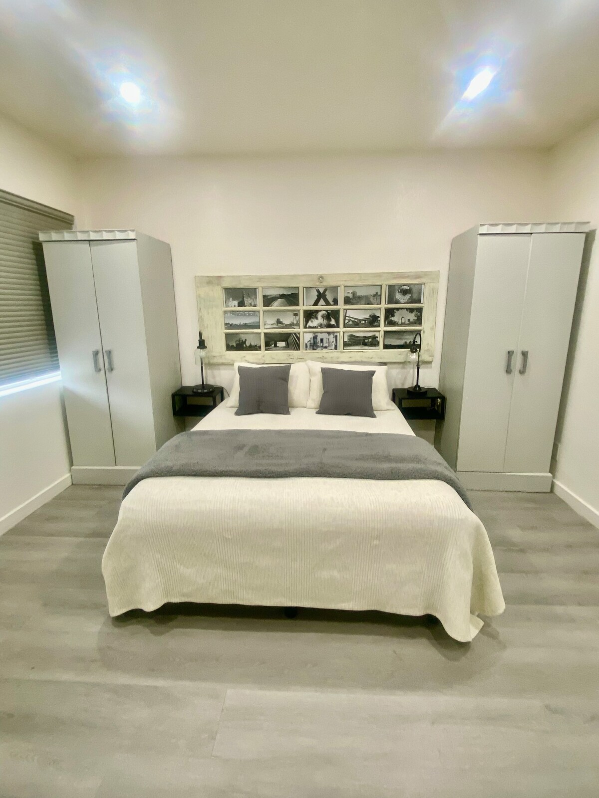 We hebben niet alleen van onze achterkamer een air bnb gemaakt. Nee meneer, deze eenheid is alleen voor bnb gemaakt. Ontspan en kom tot rust in deze rustige, stijlvolle ruimte. Heeft hoge 8inch veiligheidspoorten rondom goed verlicht terras. Verstelbaar slaapnummer bed. We maakten de beste douche die we konden maken met geweldige grootte en stijl. Onze tv 's die we in de unit hebben geplaatst, zijn ook Tv' s op de bovenste plank. Deze plek is ontworpen van de grond boven en op de hoek tot de hoek, alleen voor jou.