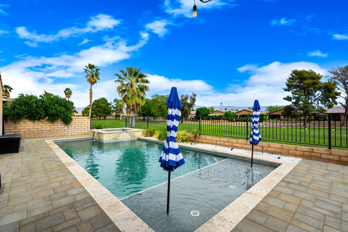 Chique Indio-resortwoning met zwembad, spa en uitzicht op de golfbaan
