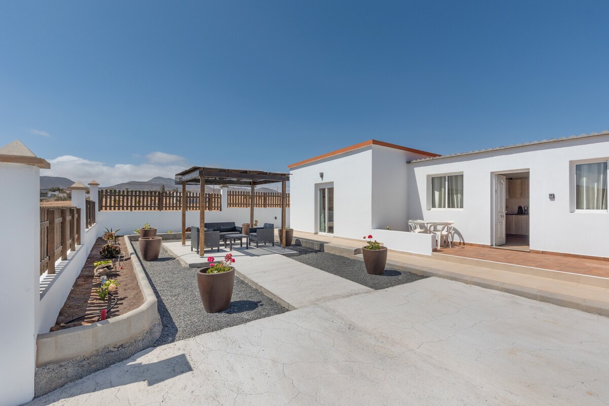 Gezellig en mooi licht appartement gelegen in het zuiden van Fuerteventura. Het appartement heeft een grote tuin, keuken, woonkamer, slaapkamer en badkamer met douche. Het terras met barbecue nodigt u uit om te genieten van de zon en krekels. De slaapkamer is uitgerust met een groot tweepersoonsbed en in de woonkamer staat ook een bank die kan worden omgebouwd tot slaapbank.