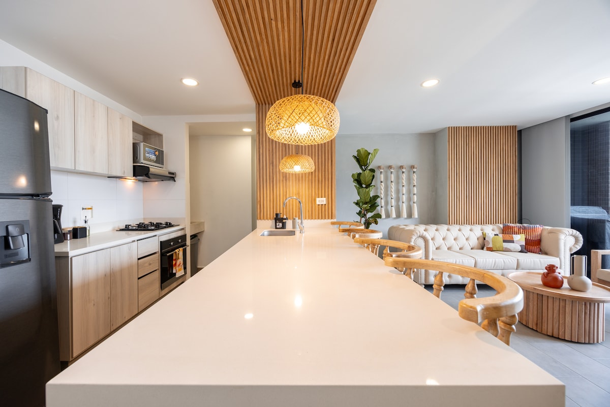 Welcome to our charming apartment in the heart of Provenza, El Poblado, Medellín! Immerse yourself in an oasis of tranquility where nature and art intertwine in a dazzling decoration. Enjoy a spacious living room, a cozy balcony, and two bedrooms with private bathrooms, all bathed in warm natural light. Our fully equipped kitchen is perfect for foodies. Relax and live the experience in this space where elegance meets serenity!