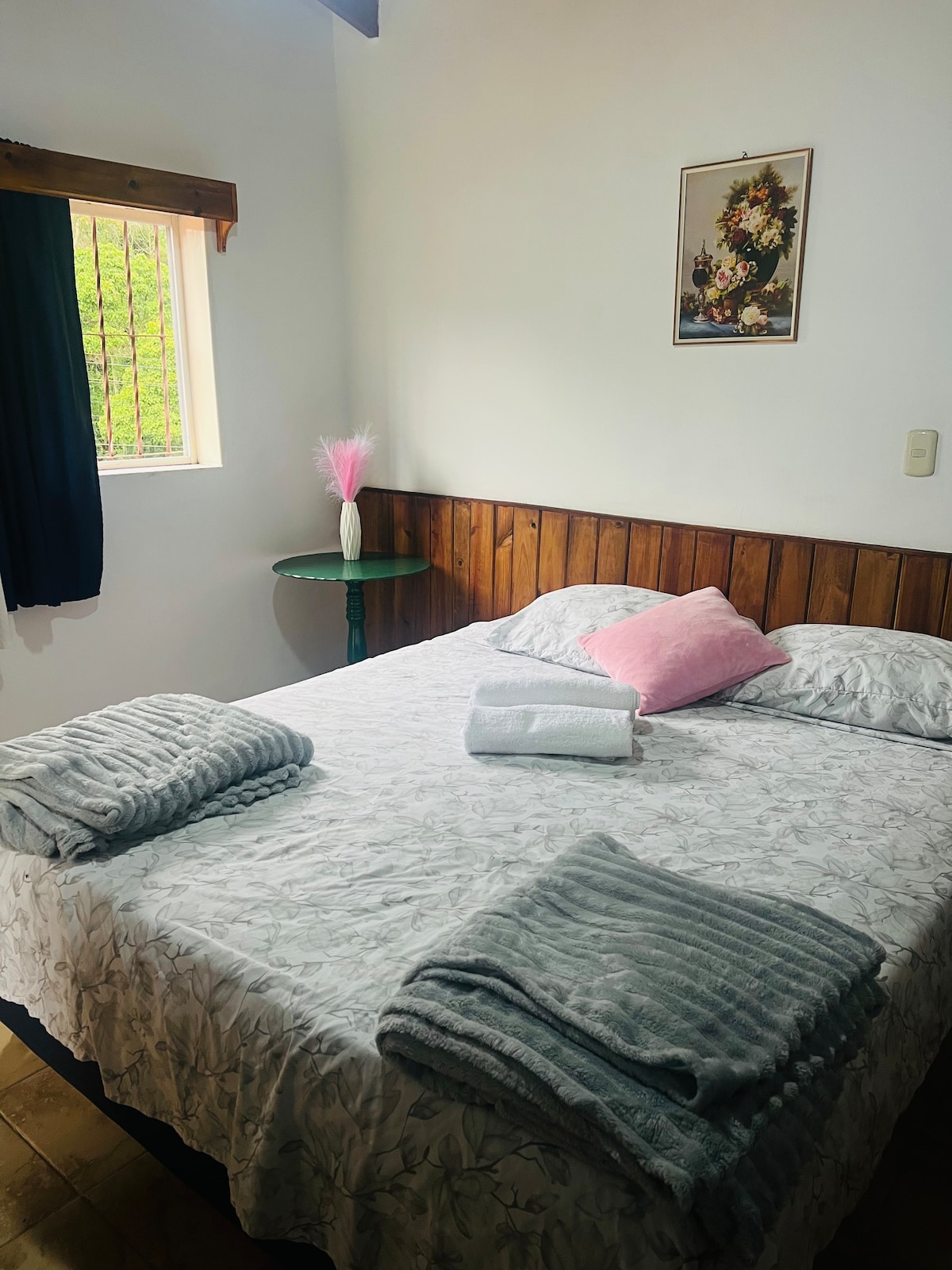 We hebben een kamer met twee tweepersoonsbedden, balkon, wifi, grill, vuurplaats buiten om op te warmen en te parkeren. Daarnaast heb je tot je beschikking een keuken met alle benodigde gereedschappen om je eigen eten en barbecue te bereiden, het is omgeven door een bosrijke omgeving waarmee je zuivere lucht kunt inademen, de ideale plek om te ontspannen en verbinding te maken met de natuur. We verwelkomen je met open armen. 😊