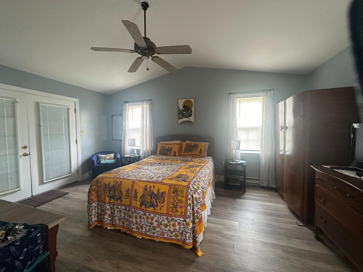 Ons klassieke huisje heeft mooie uitgestrekte uitzichten over de Potomac Rivier. Word wakker met prachtige zonsopgangen en geniet van koffie in onze afgeschermde veranda, of zit en ontspan op onze eigen privépier. Ons huis is uitgerust met comfortabel beddengoed, een volledig gevulde keuken, smart-tv, wifi en een afgelegen buiteneethoek met een gasgrill, vuurplaats en omheinde tuin. We zijn slechts een paar straten verwijderd van het openbare strand, de winkels in het centrum, de promenade en de restaurants. Verhuur van golfkarretjes kan worden gereserveerd via lokale bedrijven