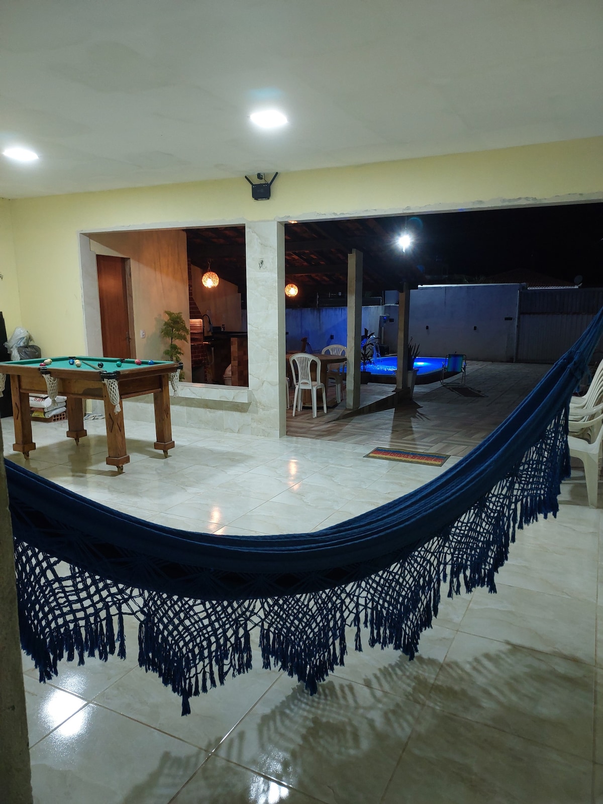 Casa com conforto, bem rústica para ficar bem à vontade com sua família, espaço externo com muita interação, pergolado , piscina e churrasqueira com forno a lenha tudo bem à vista de todos, duas redes que ficam na área de churrasqueira. Ambiente totalmente amplo e aberto, madeira disponível para fogao a lenha. Ar condicionado em dois quartos.Cama king , uma queem eum de casal , no ambiente aberto suporta um casal abaixo da escada além de ter colchões de solteiro como opção