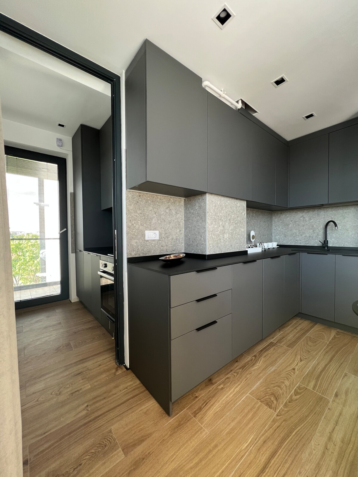 Modern, ruim, industrieel appartement, gelegen op de 14e verdieping van een woongebouw. De twee terrassen geven een 240 graden perspectief van de stad. Het is strategisch gelegen in een rustige omgeving, dicht bij de commerciële haven, in de buurt van het Centraal Station, 1500 meter naar Neversea Beach en op een minuut afstand van de oude stad.