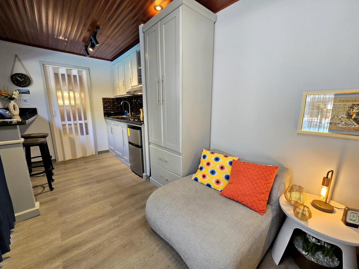 Word wakker omringd door de mangrove en het geluid van vogels in dit gezellige tiny house met een droge/ecologische badkamer en jacuzzi op 5 minuten van het strand (lopend). Je beleeft een unieke ervaring waarin je comfort en verbinding met de natuur de prioriteit hebben. Deze plek is perfect voor stellen die op zoek zijn naar privacy en direct contact met lokale wilde dieren. We hebben water dat geschikt is om te drinken en voedseloptie tegen extra kosten (afhankelijk van beschikbaarheid).