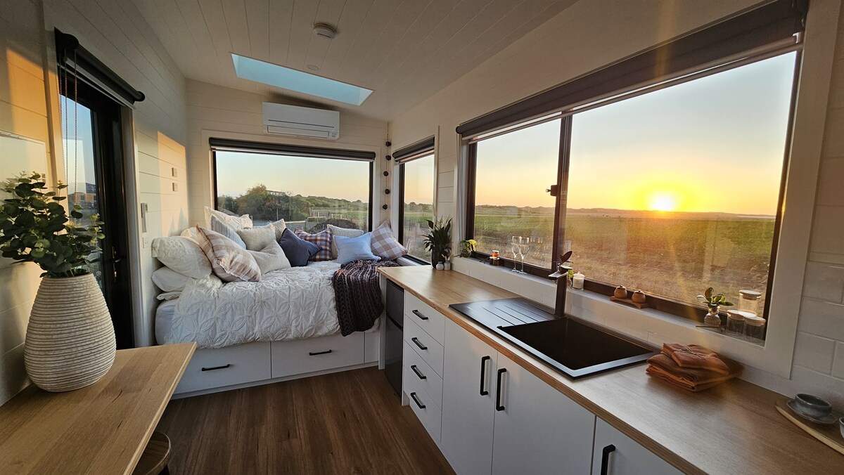 Genesteld tussen de pittoreske kust van Killarney op korte rijafstand van Port Fairy. De Coastal Sunset Tiny Home biedt een heerlijk, boetiek, toevluchtsoord voor een unieke ervaring voor het perfecte uitje. Op vijf minuten lopen kun je genieten van de zon op het afgelegen Killarney-strand, perfect om te zwemmen, snorkelen, vissen of gewoon te ontspannen. Je Tiny Home wordt omringd door ongelooflijk schattige en vriendelijke boerderijdieren. Geniet gewoon van de adembenemende natuurlijke zonsondergangen van deze kusthaven.
