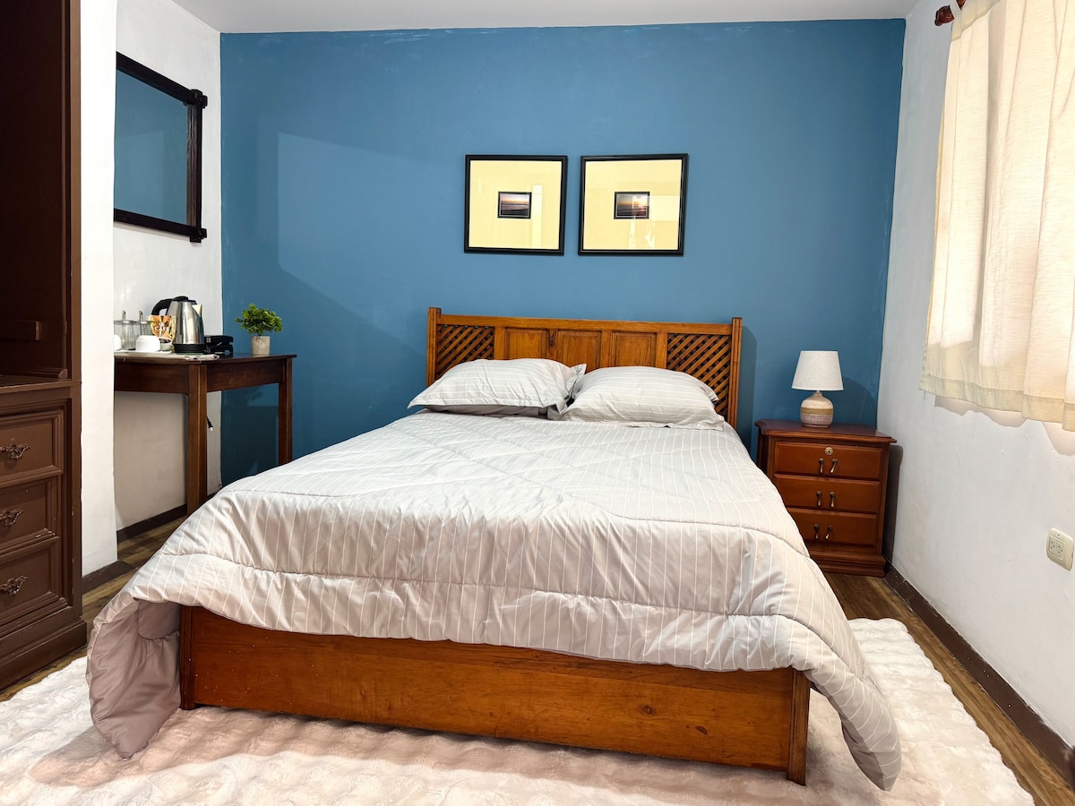 Geniet van onze moderne luxe prive suite met alle diensten: keuken uitgerust met elektrische apparaten (magnetron, koffiezetapparaat, sandwich maker, koelkast, blender, gerechten, bestek) smart TV met Netflix, glasvezel internet. Verwarming. Balkon over de vallei van Cuenca ligt op 15 minuten rijden. Parkeergelegenheid beschikbaar en gratis. Rust en stilte vanuit een veilige en gastvrije landelijke omgeving. Ideaal om te genieten van de natuur, rust of werken op afstand (perfect voor coworking). Culinaire ervaringen op aanvraag.