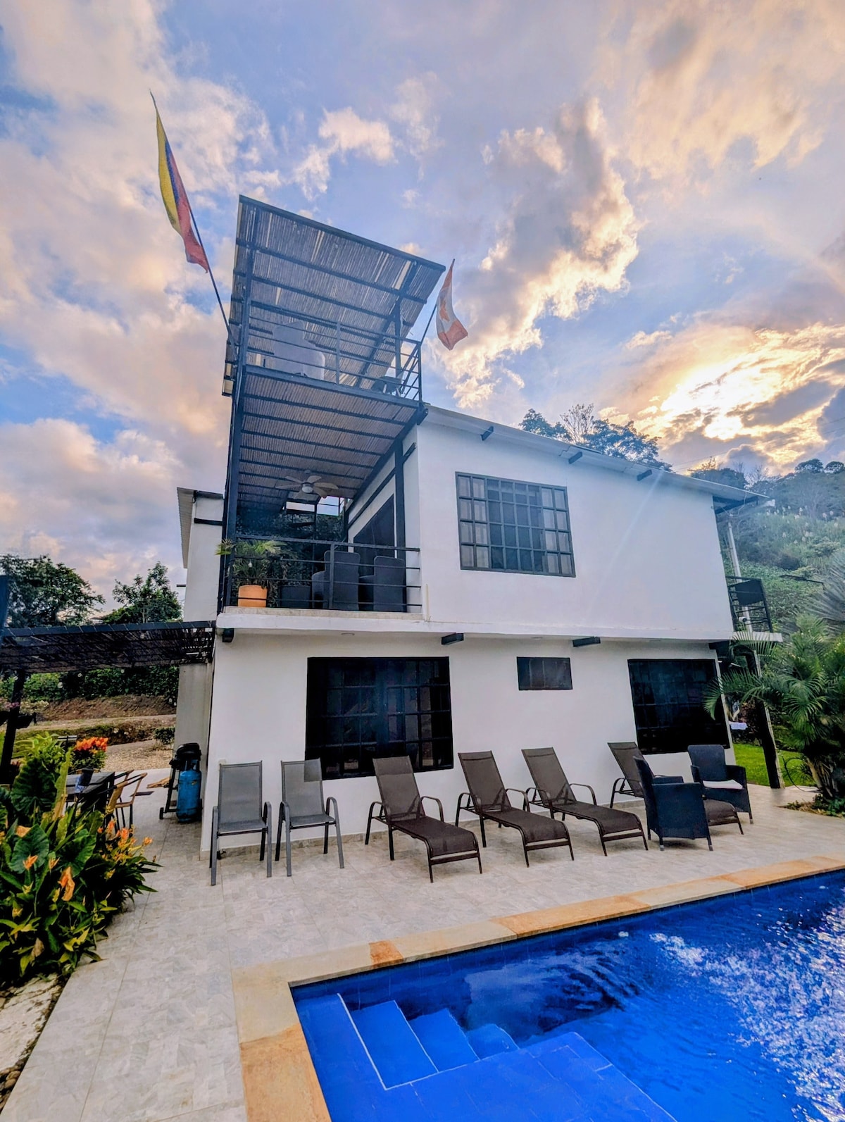 Halfway between Bogotá and the warm light of Melgar, there’s a chill hideaway where nature and good design come together. A modern, private spot built for real rest. Spend your days by the saltwater pool, grill something outside, or kick back for movie nights with an awesome sound system. Starlink keeps you fast and online, even when everything around you tells you to slow down. Perfect for couples, families, or anyone who just wants to unplug — without giving up the good stuff.