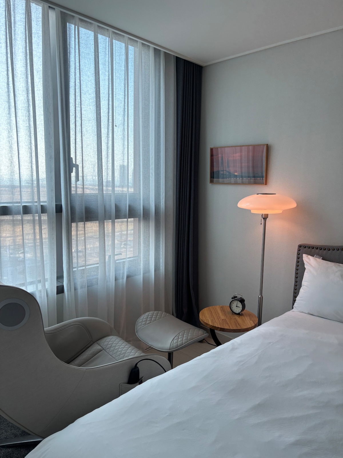 Songdo (Healing Stay)#Ceramic massage stoel#Zonsondergang met uitzicht op zee#Netflix#Zakenreis#Lang verblijf