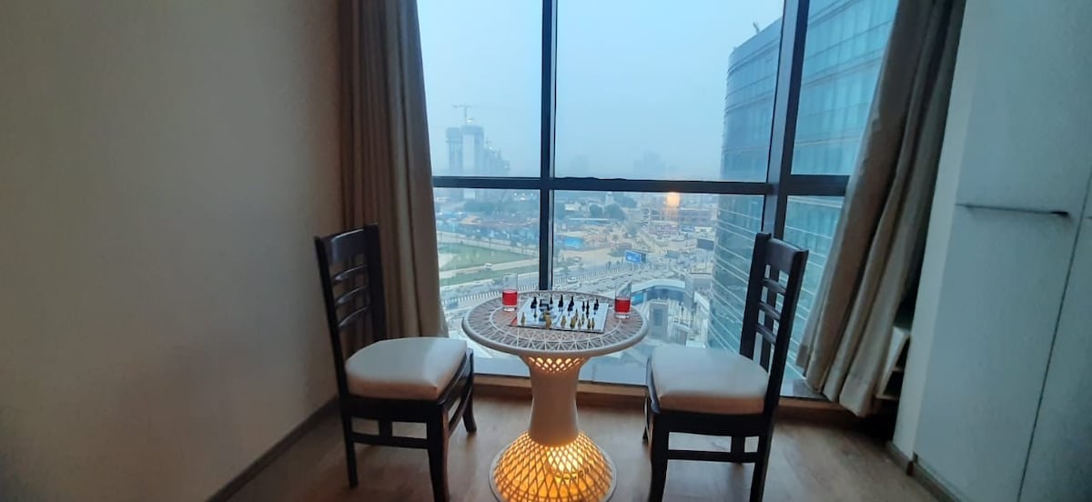 Mooie 1BHK Plaza@106, 17e verdieping Verscholen in de rustige buitenwijken van Gurgaon. Perfecte mix van comfort en gemak. Zelf inchecken is ideaal voor soloreizigers, koppels of zakelijke gasten. Locatie & Toegankelijkheid: 1. IGI-luchthaven: 30 minuten (ongeveer 20 km) 2. Yashobhoomi Convention Centre: 15 min (ongeveer 10 km) 3. Dwarka Sector 21 metrostation: 15 min (ongeveer 10 km) 4. Metrostation Yashobhoomi Airport: 15 min(ongeveer 10 km) 5. Treinstation Gurgaon: 10 minuten rijden (ongeveer 3,5 km)