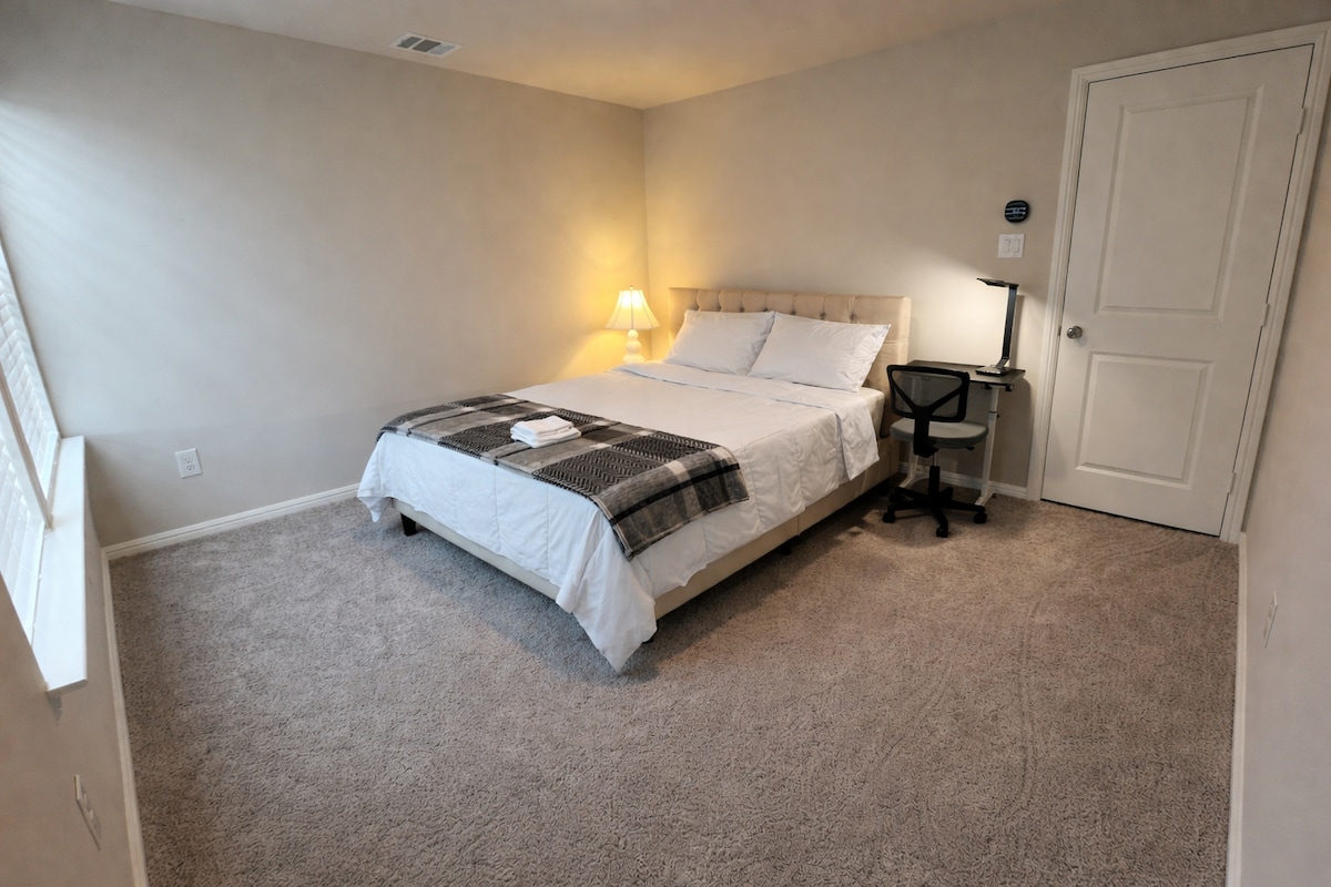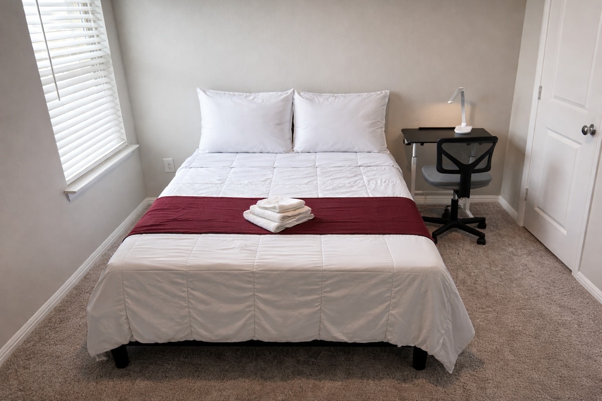 Welcome to the City of Denton! Priced for Long Term Stays! Savvy Stays DFW is proud to serve our community! The City is a vibrant and growing community with many opportunities. Denton has 41 parks three recreation centers, a water park, community swimming pools, and just over 73 miles of trails throughout the city. -1 min highway access located on a quiet cul-de-sac -4 Bright, sun-lit, comfy, private secured guest rooms -2 Full bathrooms - Smart TV's in Living Room, 3 Bedrooms