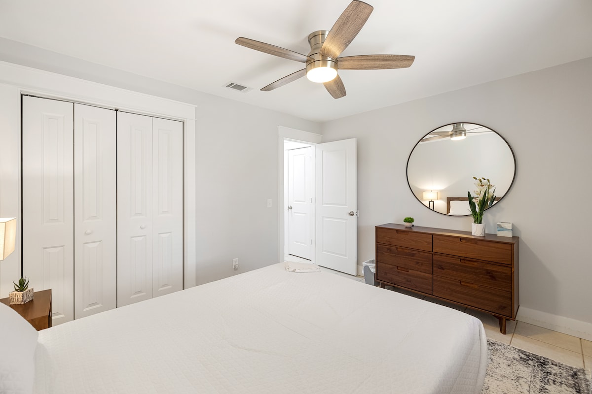 Welkom bij Camp Creek Cottage #8! Ons charmante rijtjeshuis aan de oevers van Camp Creek Lake in South Walton County en centraal gelegen aan de beroemde Highway 30A biedt een rustige retraite met een weids uitzicht op torenhoge eiken en het serene meer. Deze onlangs gerenoveerde woning met één slaapkamer en 1,5 badkamer biedt comfortabel plaats aan maximaal vier gasten en beschikt over een eigen balkon - perfect om 's ochtends te genieten van een kopje koffie of 's avonds van een cocktail terwijl je geniet van de rustige omgeving.