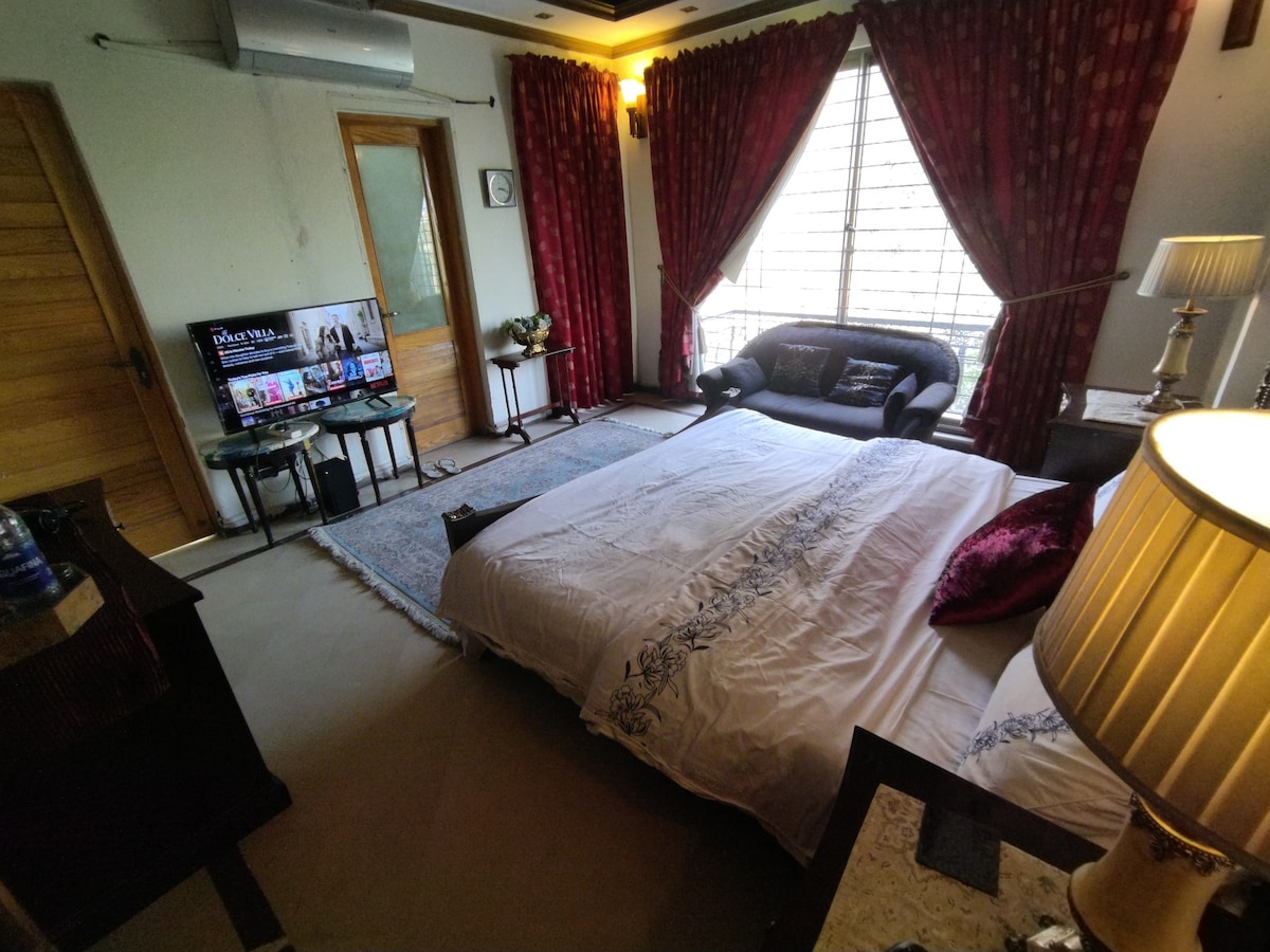 Locatie: Gulberg III-Al Kareem Apartments Type: klein, gezellig studio-appartement Ideaal voor: soloreizigers, koppels, zakenreizigers Aankomst 13.00 uur Uitchecken 11.00 uur Vroegste inchecktijd mogelijk 12.00 uur We zijn ruimdenkend over onze gasten die met vertrouwen boeken - Geweldig uitzicht op de zonsondergang - Super veilig en privé gebouw - 24-uursbewaker - Ups back-up - AC van 1,5 ton omvormer - Eigen bureau - Kleine kitchenette voor het maken van thee - Dagelijkse schoonmaak inbegrepen in het verblijf - TV - Kingsize bed - Ondergronds parkeren