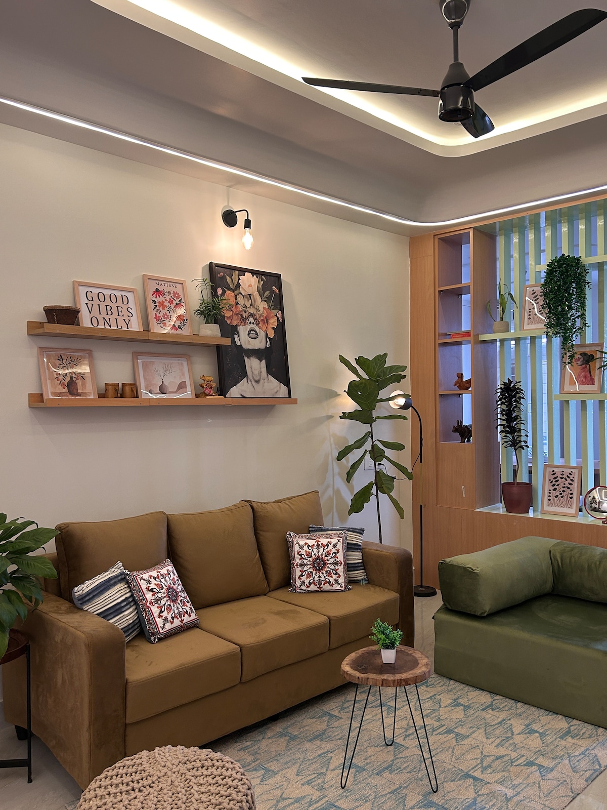 Enjoy a spacious, stylish 2BHK retreat just minutes from the airport-perfect for travelers, couples, and small families. Unwind on your private balcony with calming wetland views and relax in two AC bedrooms with cozy queen beds. The living room offers a comfy couch, smart TV, and a cute photo corner. High-speed WiFi and ample parking add to the ease and comfort of your stay. Crafted for slow mornings, soft light and those "I could stay forever" moments. Welcome to The Veyora journey.