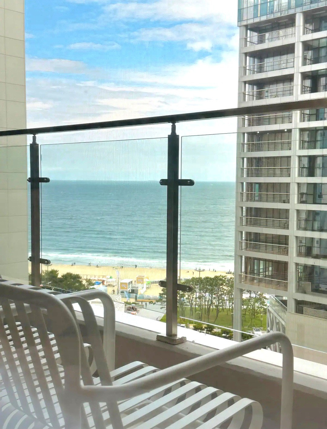 Mooi terras Haeundae hoogbouw vooraan Premier oceaanuitzicht / Queen 1 + slaapbank +2 kamers volledige optie