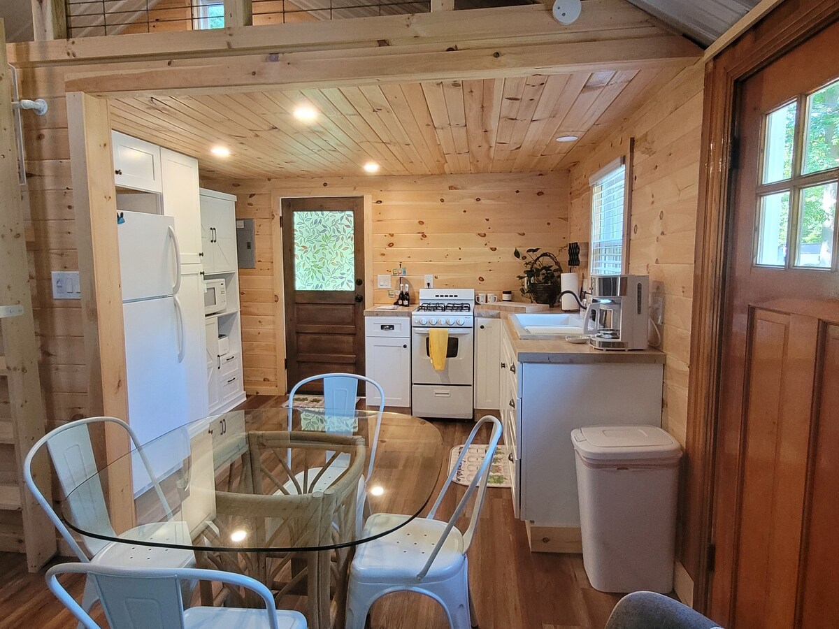 Dit 110 hectare grote tiny house Estate aan het meer verbindt je met de natuur terwijl je ontspant in het bubbelbad. Het naburige staatspark heeft meer dan 14.000 hectare met een meer en paden. Dit kleine huis is waar de natuur luxe ontmoet!! De elektrische open haard verwelkomt je terwijl je rust en kijkt naar je favoriete show. Er is een vuurspier en een houtskoolgrill en een grote keukenapparatuur. Eigenaar woont op het terrein, maar geen gedeelde faciliteiten. Dit huis heeft Star Link-internet, maar niet gegarandeerd.