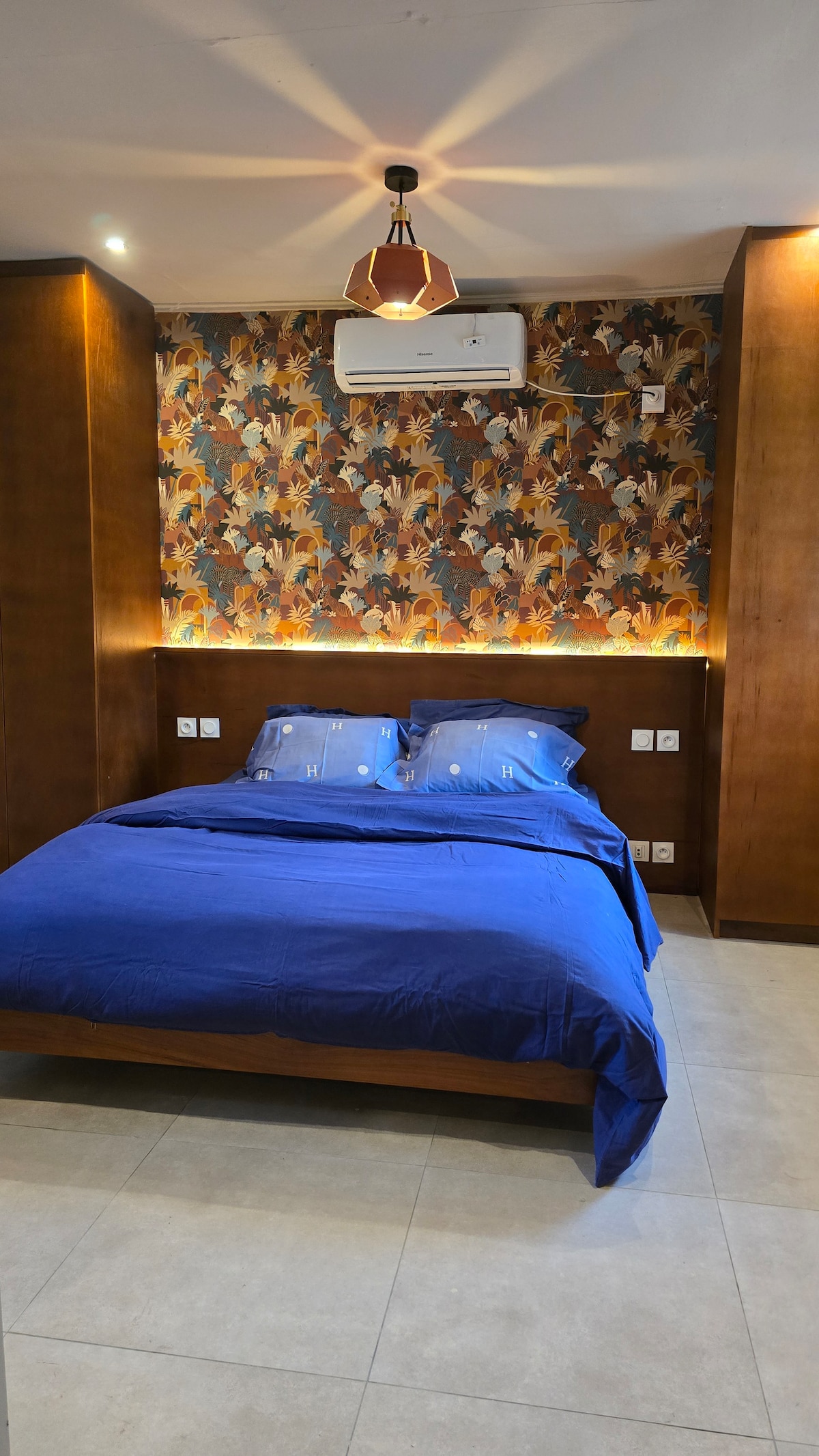 "Chez Ébène – stijlvol en ruim appartement in Bonanjo, Douala. Dit appartement is geïnspireerd op Zuid-Afrika en Kameroen en combineert de elegantie van zwart met vleugjes Afrikaanse kunst. Cocooning kamer, lichte woonkamer, uitgeruste keuken. Rustige buurt dicht bij voorzieningen. Ideaal voor stellen of professionals. Boek je oase van rust en geniet van een verblijf in een unieke omgeving, waar moderniteit en authenticiteit samenkomen." Beschikbaar: Netflix, Glasvezel, Canal + en Generator