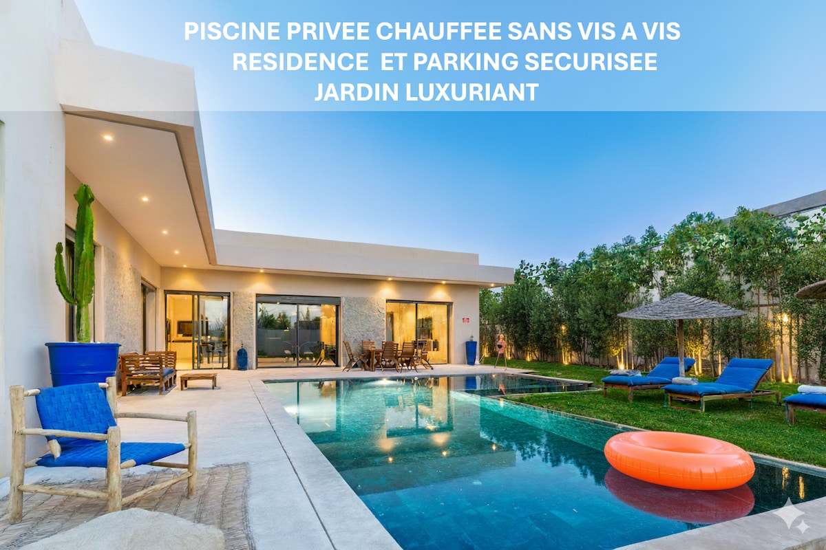Ontdek deze prachtige villa van 280 m ², ontworpen om je een oase van rust te bieden op slechts 20 minuten van Agdal en 30 minuten van Gueliz. Deze villa zonder vis-à-vis garandeert privacy. - 3 Parent Suites: Ruim, elke suite is uitgerust met een eigen badkamer, die elke gast een privéruimte biedt - Verwarmd zwembad: geniet het hele jaar door van een verwarmd buitenzwembad - Met een ruime woonkamer, ideaal om samen te komen, en een volledig uitgeruste keuken
