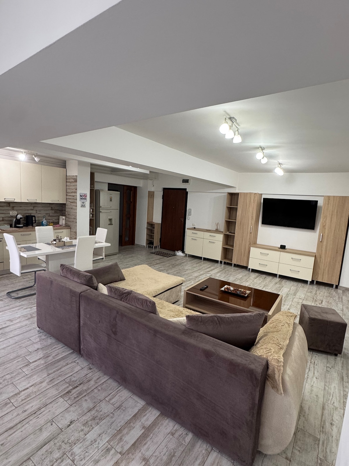 Apartament modern si confortabil situat in zona centrala a Craiovei pe o strada linistita ,dotat cu utlitati noi care se compune din: un dormitor spatios dotat cu pat dublu, televizor,birou,comoda;un living cu televizor mare,coltar extensibil ; un balcon frumos amenajat,o baie noua dotata cu cada ; bucatarie complet utilata: aragaz,frigider,masina de spalat,filtru cafea,hota,farfurii,cesti,tacamuri ,ustensile de gatit etc;un hol cu un cuier si dresing.Toata mobila si dotarile sunt noi.