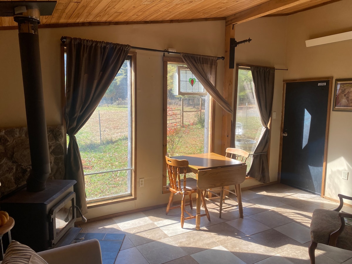 Trek je terug op het platteland en ervaar eenvoudig wonen op zijn best! Reis via grindweg om te genieten van een vredige omgeving met zeer weinig verkeer. Tweede verdieping woonruimtes met alles wat je nodig hebt voor een heerlijk verblijf. Keuken is gevuld met kook- en eetbenodigdheden en koffie.. Ligbank, tv met Roku en dvd's (geen kabel), spelletjes en verschillende boeken om je te helpen ontspannen en tot rust te komen. Kinderbedje beschikbaar voor derde gasten. Nu met WiFi!